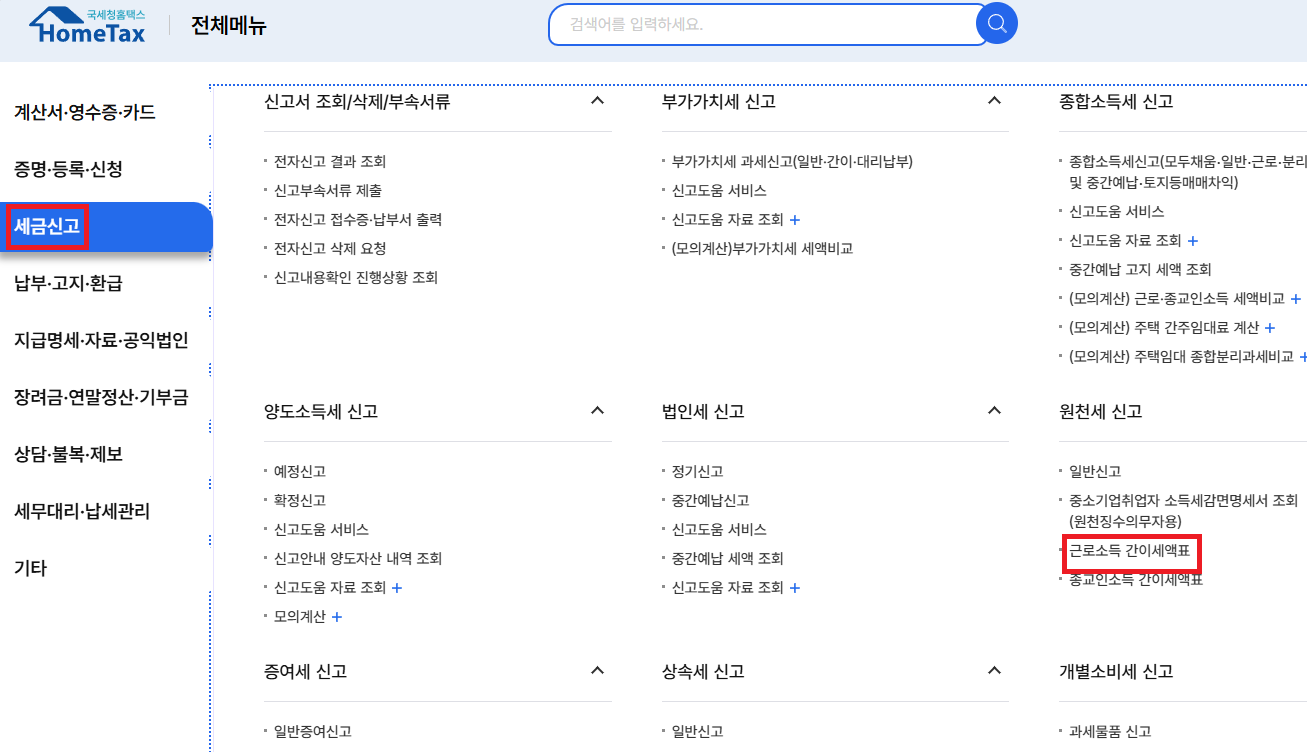 직접 간이세액표를 찾아보고 싶은 경우, 홈택스에서 간편하게 확인할 수 있습니다.