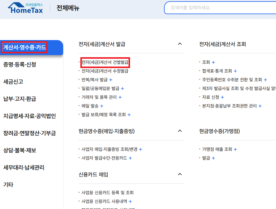 홈택스에서 전자세금계산서 발급 내역 조회 가능!